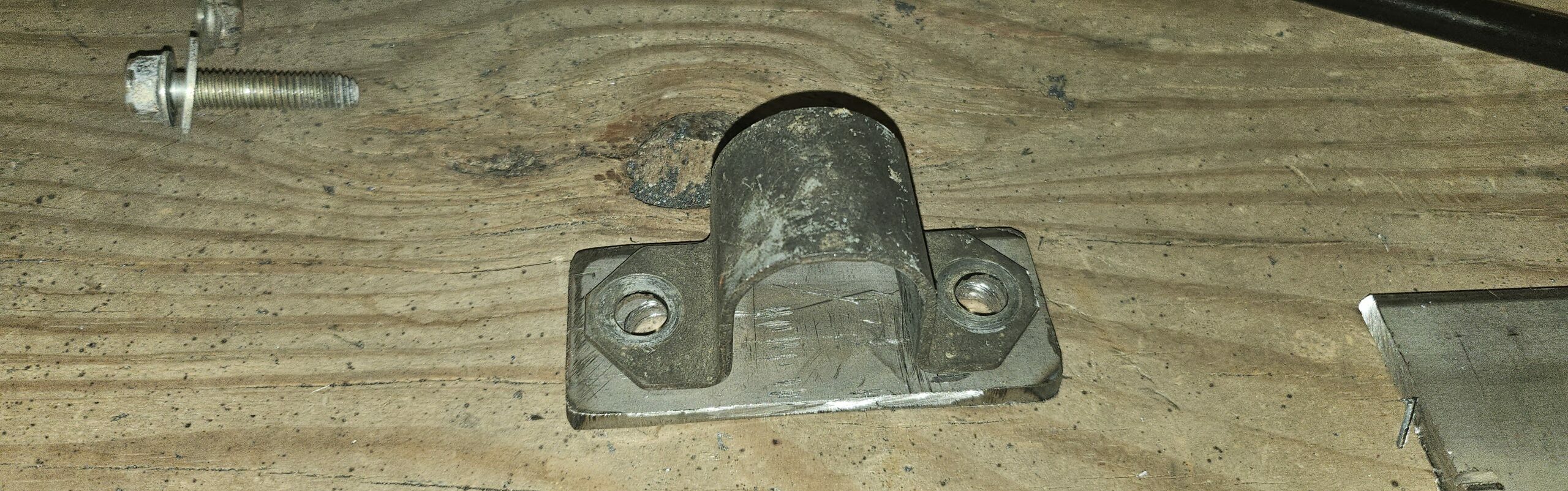 Before and After. Due to clearance, the upper hole of the bracket has a bolt welded to it from the other side. The back is then ground down to 1/16″ to keep a strong weld but eliminate excess material.