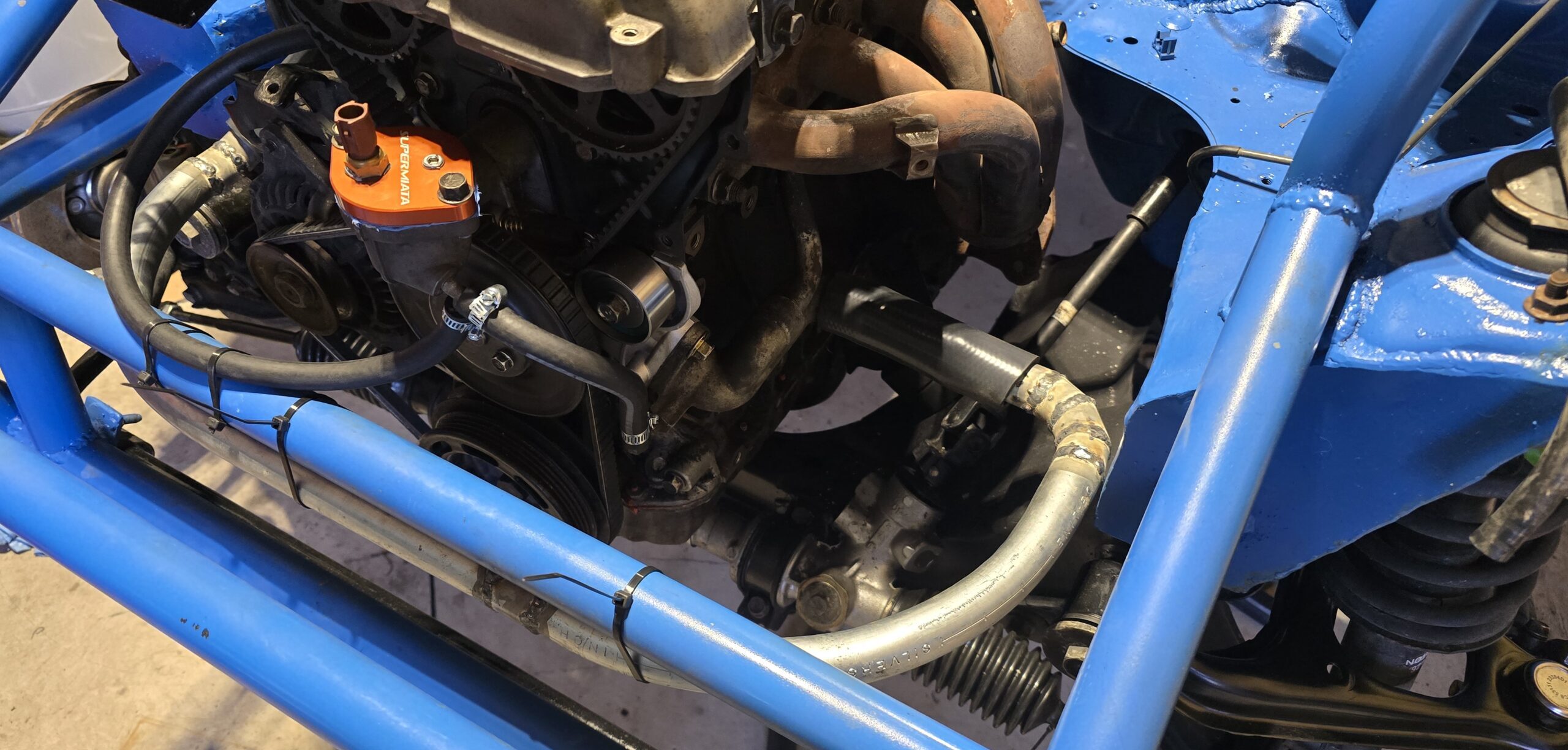 I previously ordered a SuperMiata Coolant Reroute kit that sat on the shelf for over a year. Having the hot side exit from the rear of the engine makes the routing a lot easier, so I went ahead and installed the reroute. However, in the future, I would probably fabricate my own because, although convenient, $300 is a bit steep. (It’s going to be a while before I need to fab one, but I will make sure to add a link here when I do.)
