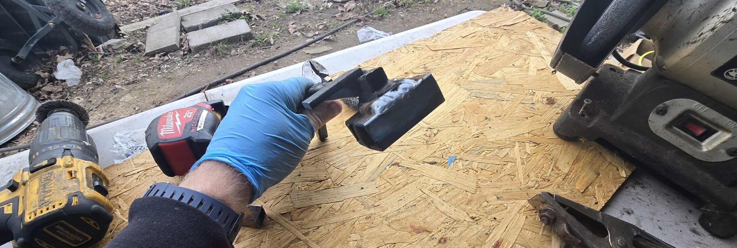 To bring the unpressed gas pedal up to the pressed brake pedal, I welded two pieces of the 1/2″ square steel tubing to the pedal face. I also made the new pedal face a bit wider, as you can see in the pics. If I were doing it again, I would probably go another quarter of an inch, but as is, the half inch worked. (I still had a little more travel than I wanted on the heel-toe.) But at least with the extra half inch, I was able to blip the throttle and downshift cleanly without the clutch.